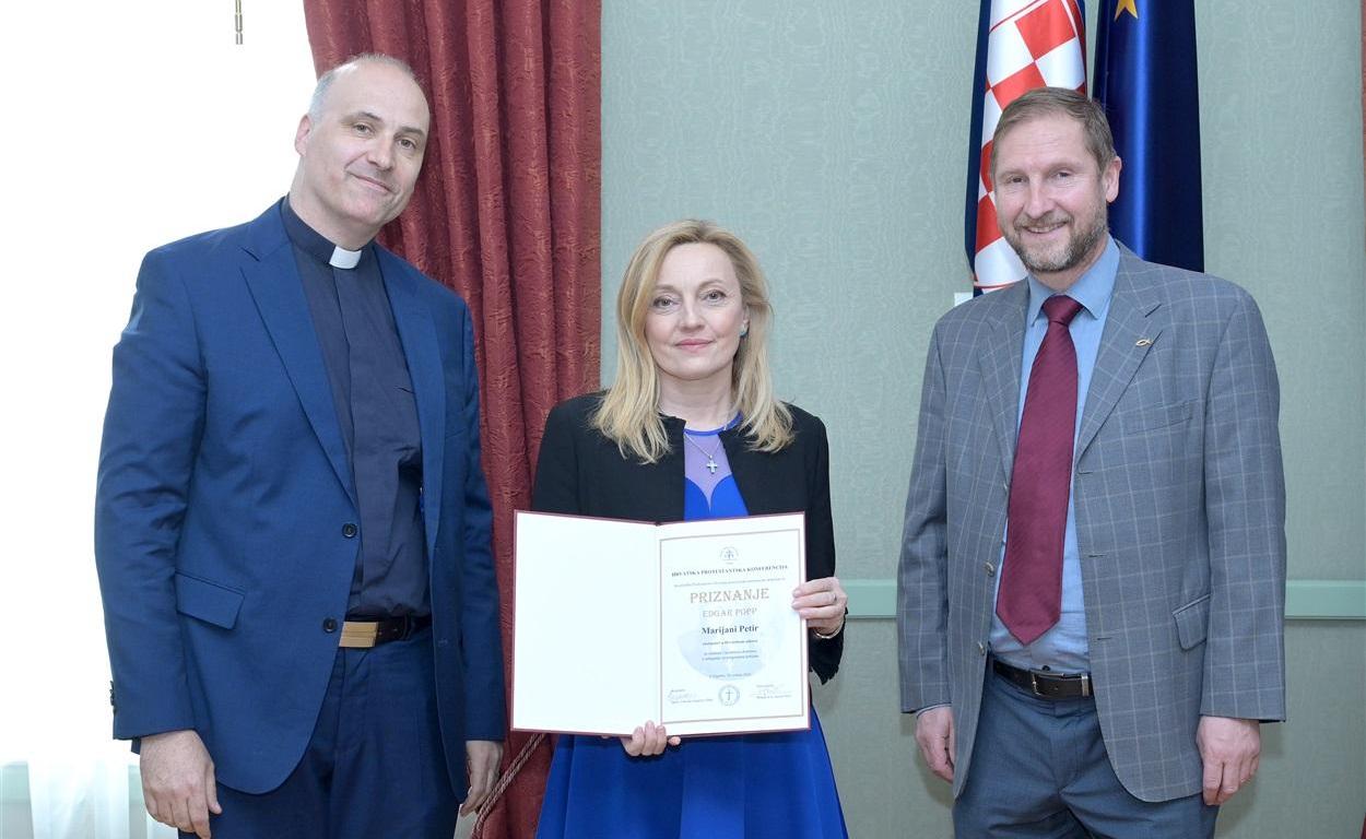 Predsjednik Hrvatske protestantske konferencije, pastor Vatroslav Župančić zahvalio je zastupnici Petir što kroz svoj rad promiće slobodu vjeroispovijesti, a posebice jer se zauzima za pomoć onima čija su prava najugroženija te joj je uručio priznanje “Edgar Popp”, koje joj je Hrvatska protestantska konferencija dodijelila za izniman i nesebičan doprinos u zalaganju za progonjene kršćane.