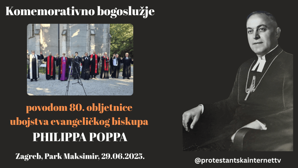 U nedjelju, 29. lipnja 2025., u zagrebačkom parku Maksimir održano je komemorativno bogoslužje u povodu 80. obljetnice ubojstva evangeličkog biskupa Philippa Poppa (1893.-1945). Park Maksimir odabran je kao mjesto sjećanja jer se, prema dostupnim informacijama, vjeruje da je biskup Popp upravo ondje pogubljen u noći s 29. na 30. lipnja 1945., te da je na području parka i pokopan.